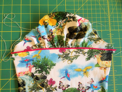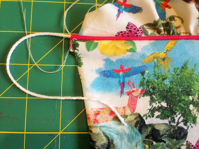 2. Next, using your zipper foot and a long straight stitch sew a row of stay stitching along the edge of the piping. If you wish you can sew this in a contrasting thread to make it easier to see if you wish to remove it at the end.