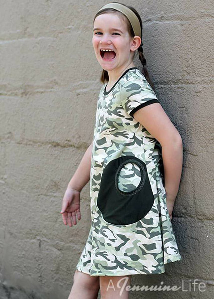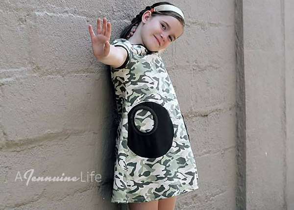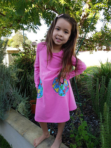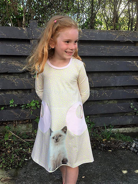 The Playtime Dress is the perfect base garment for summer or winter. This is a comfortable A-line Swing Dress that your girls will love wearing. It can be made plain or by making the front a feature with the fabulous circle pockets. Perfect teamed with stockings, socks or leggings.