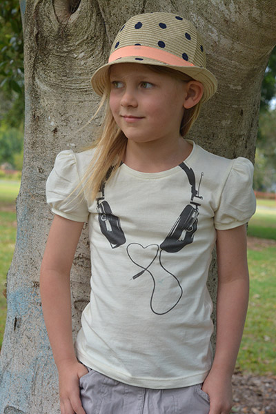 I began drafting a little Fun Tee for my girls. I could only find plain 100% jersey at Spotlight and at that stage Lincraft was not easily accessible but I do not think their knit range was great, at the time. So, I used some fun iron-on transfers to jazz them up.