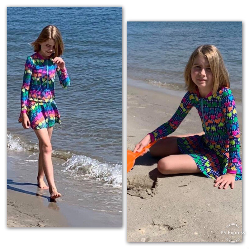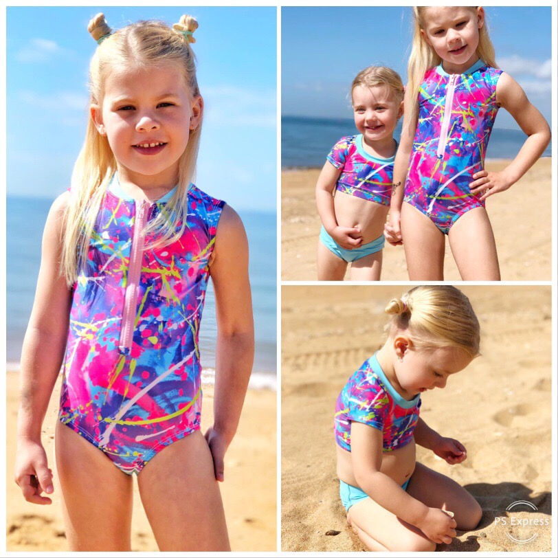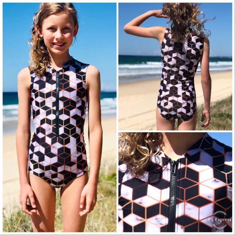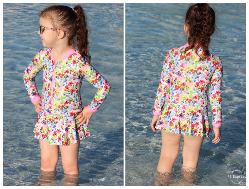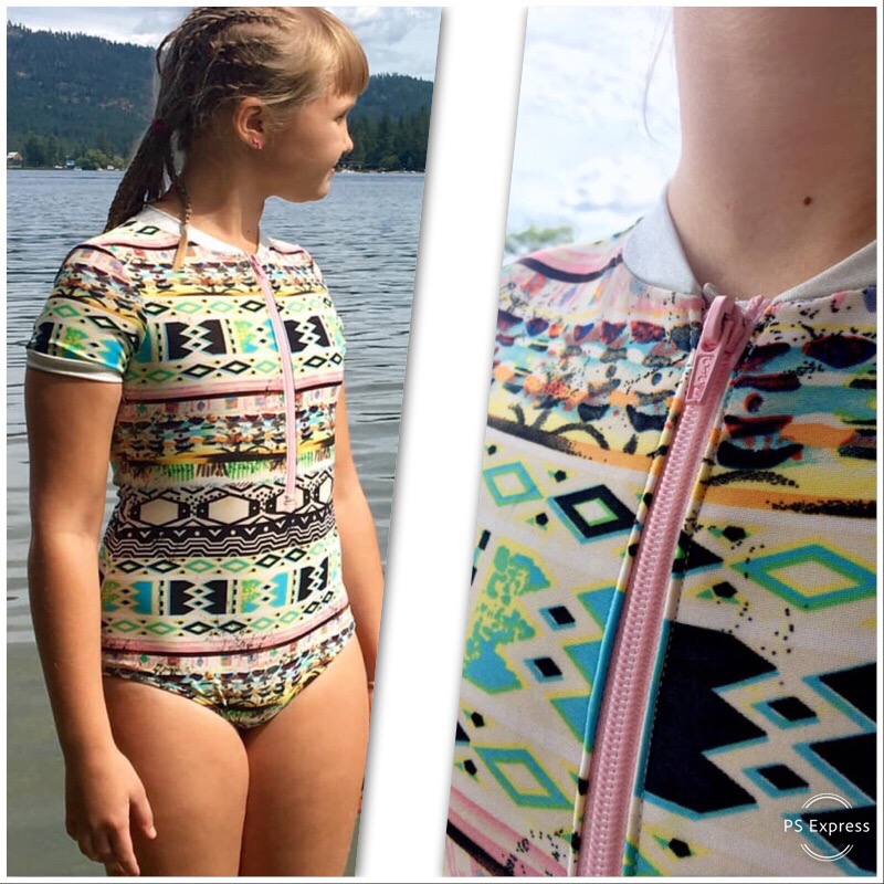 To make a Girls Stinger Bodysuit just takes one step further than making a plain swimsuit. The Zip! You need not be afraid of inserting a zip. You just need to get hold of some wash away tape. Using this tape to hold the zip will make sewing a breeze. If you join our Facebook Sewing Group you will see a post, with this picture, where members have shared where they get their tape or zips from. There are many places online where you can buy Wash Away Tape from and have it sent right to your door.