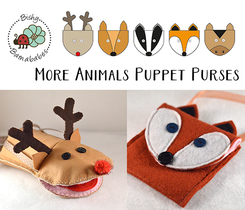 The Puppet Purses from Bishy Barnababes make great, fun gifts that can be whipped up in no time. Using felt or fleece, they are a unique design that combines both a puppet and a small purse for loose change or other treasures. Kids love them! There are two sets of animals and both patterns are currently on sale in the Bishy Barnababes shop.