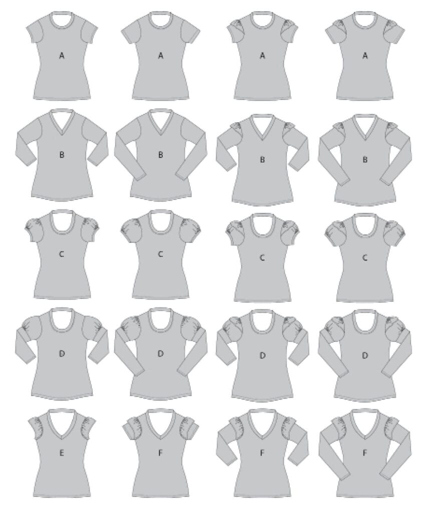 In this new release, you have the option of making your sleeves plain short or long and gathered short or long with the addition of mini flutter or full flutters on their own. There are 3 neckline options including; Round, Scoop, or High or Low V Neck.