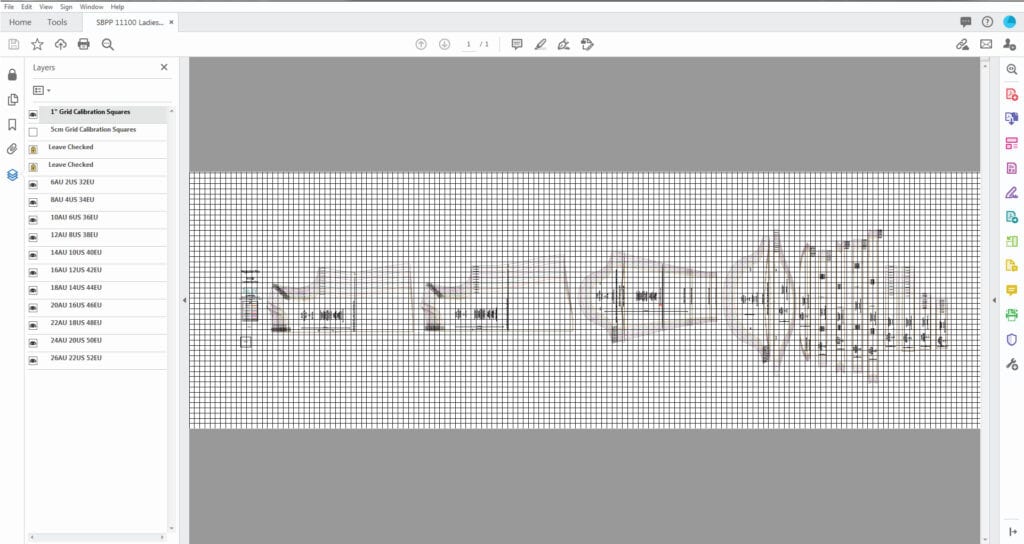 The Projector files still use the layers feature so that you can choose the size that you want to work with. The pattern pieces are spread in a single file across the horizon to enable ease of finding all the pattern pieces. There is an option to choose 1″ or 5cm calibration layers.