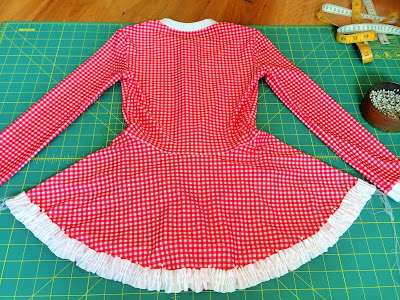 9. This is what the reverse side of the skirt looks like. With the ruffle slightly showing as it covers the raw edge of the skirt.