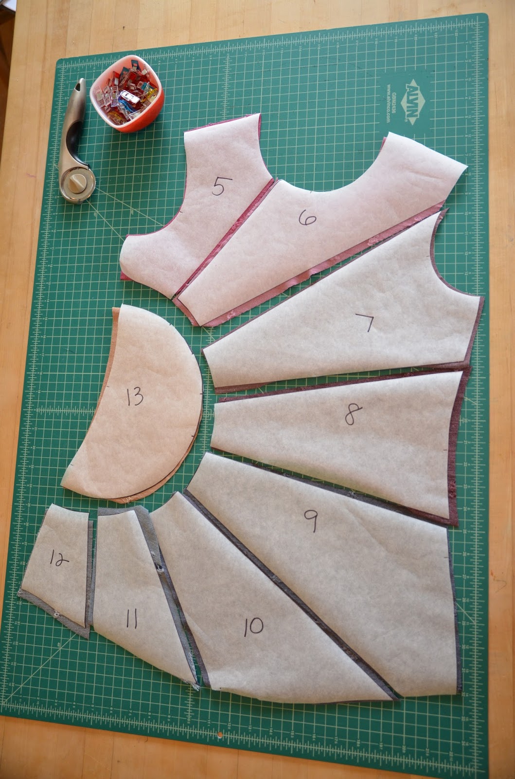 Number the pieces! Also, I’d suggest adding a grain line arrow on each piece at this stage – I wish I had done that! It was a little hard to figure it out once it was cut up.