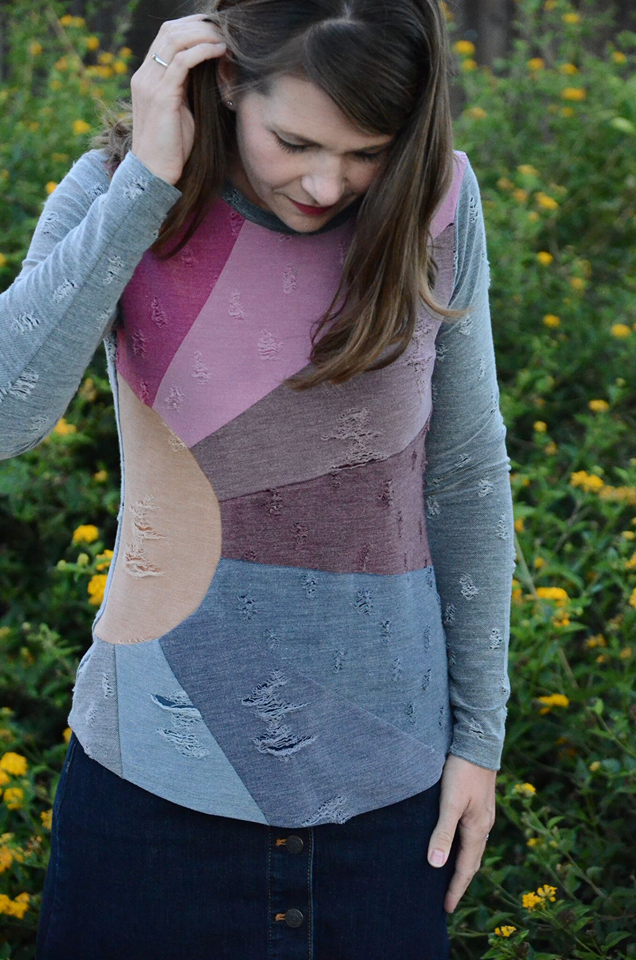 We have Katie to thank for this beautiful post today. She has completed the most outstanding top using the Girls Sunshine Tee Template to adapt one of her favourite t-shirt patterns.
